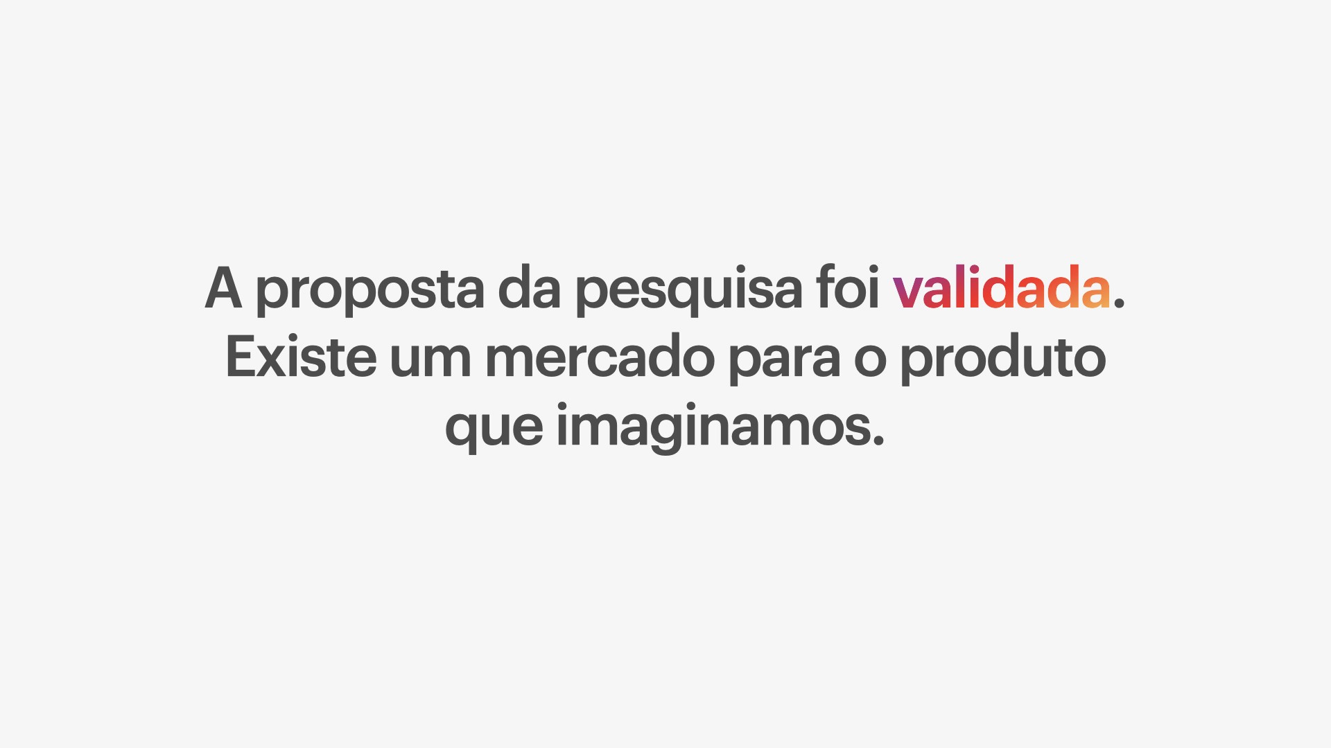 A pesquisa foi conduzida e elaborada pelo time de design, com alguns pontos de validação pelos gerentes de projeto, mas não contou com a participação do time de desenvolvimento e agilistas. Portanto, para facilitar o handoff dos resultados ao restante do time, montei uma apresentação em estilo deck para ser realizada na semana seguinte.