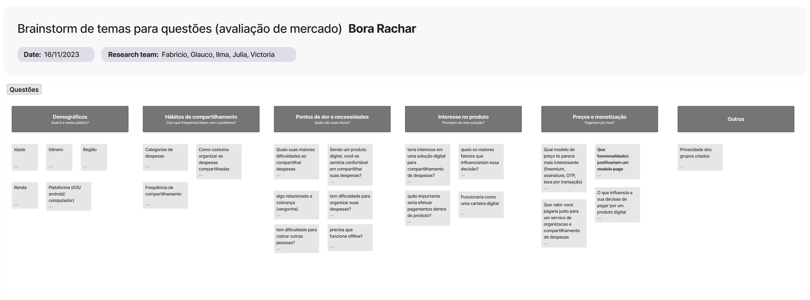 Sendo assim, foi proposto, também pelo time de design, a realização de uma pesquisa para aferir o interesse do mercado em uma solução que auxiliasse a divisão de despesas, mas de uma maneira mais abrangente, e não só de assinaturas, como focado inicialmente.