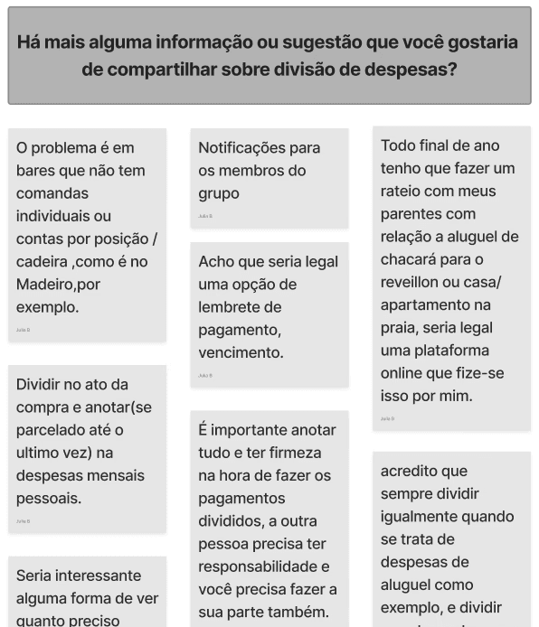 We concluded that people did use to share expenses and that they did encounter difficulties when going through this process.