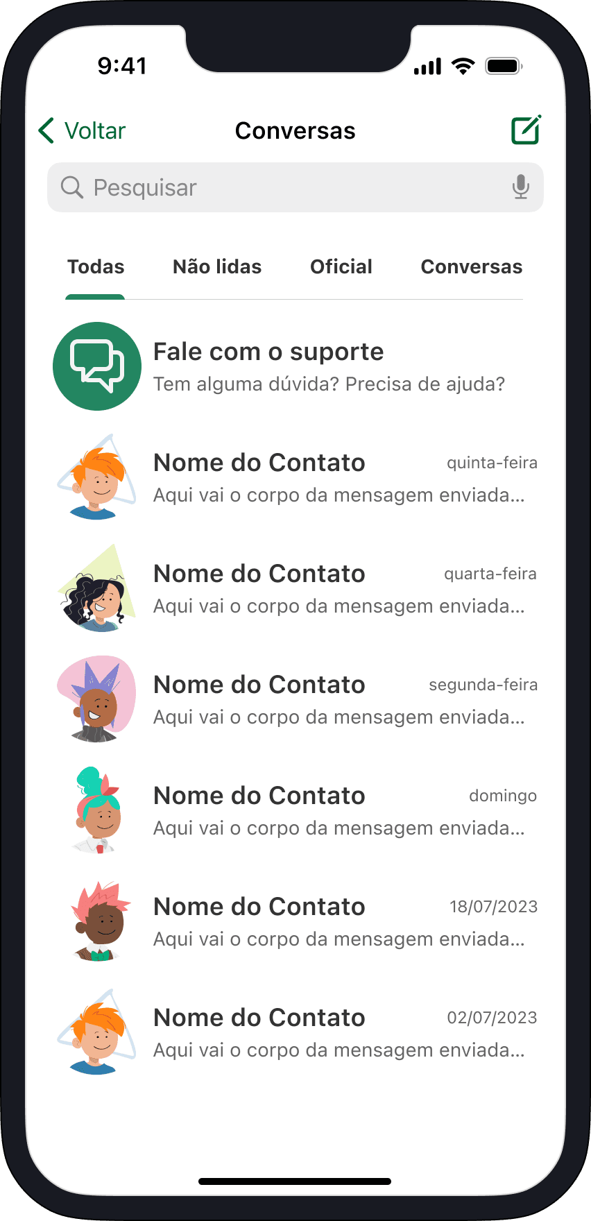 Com a remoção dos banners, a bottom sheet com as opções de contato pode ser movida para o canal fixo de suporte na tela de mensagens, para que o acesso ao suporte por atendente humano permaneça facilmente acessível.